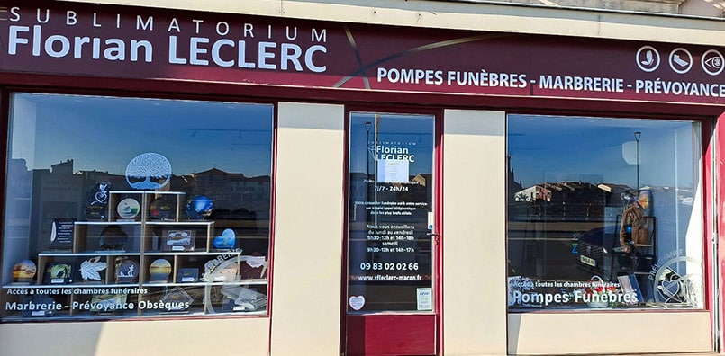 Les pompes funèbres Sublimatorium Florian Leclerc vous accueillent dans leur agence de Mâcon (71000). Notre équipe de Conseillers Funéraires est à votre disposition pour vous conseiller, vous écouter et vous aider dans l'organisation des obsèques.